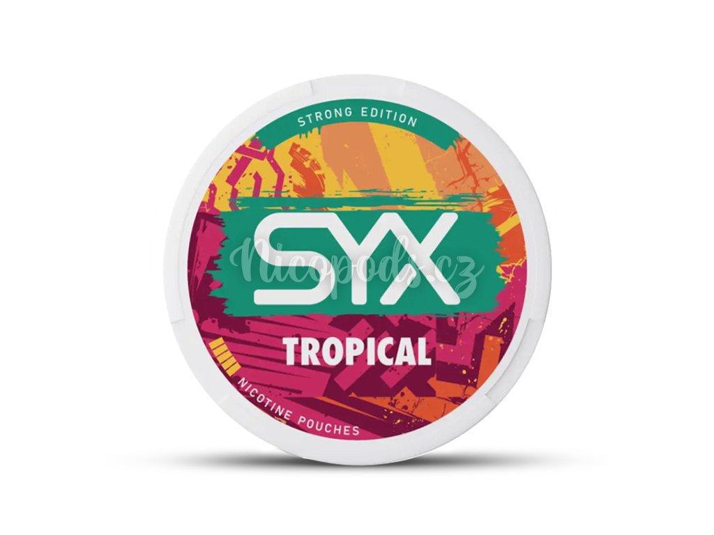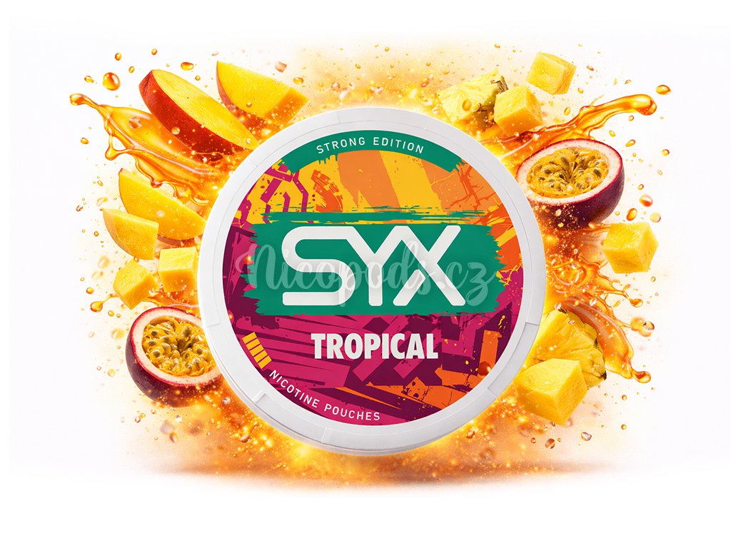 Nikotinové sáčky od značky SYX s příchutí tropického ovoce. Jedno balení obsahuje celkem 20 ks sáčků ve velikosti slim. Tento formát je velmi diskrétní a oblíbený mezi uživateli. Obsah nikotinu je 16,4 mg/g (11,5 mg/sáček).
