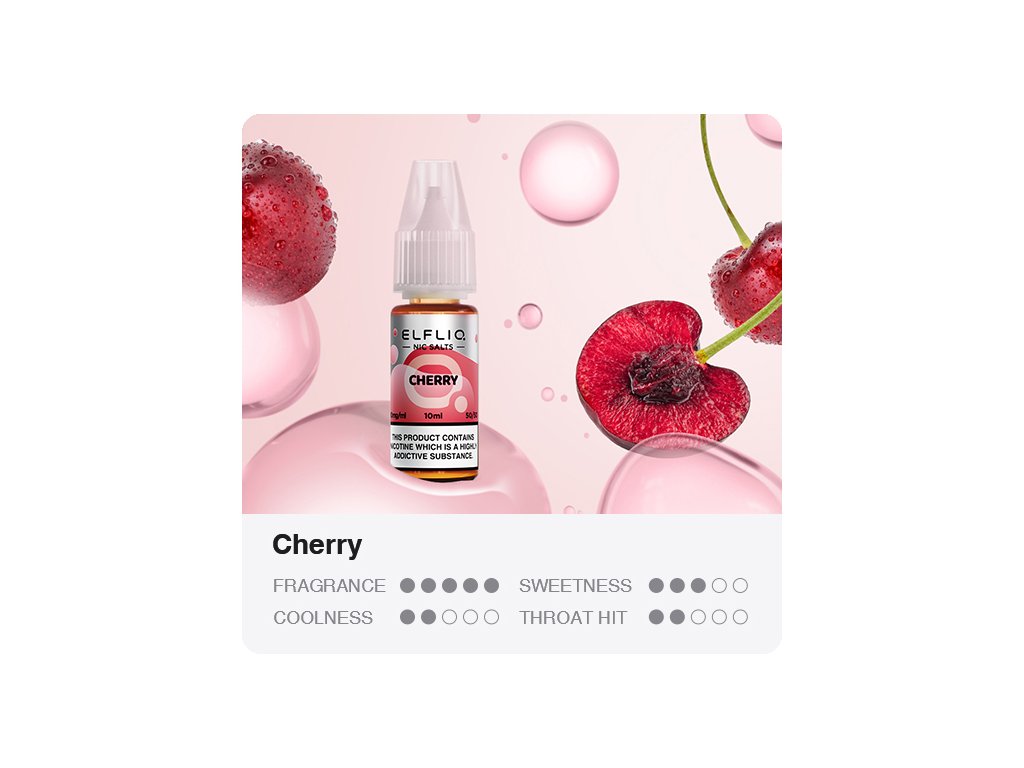Oblíbená ovocná příchuť třešní! E-liquidy do e-cigaret od nejprodávanější značky na trhu ELF BAR. E-liquidy překvapí zejména svojí chuťovou autentičností. Jedná se o stejné náplně, které se nachází také v jednorázových e-cigaretách od této značky.