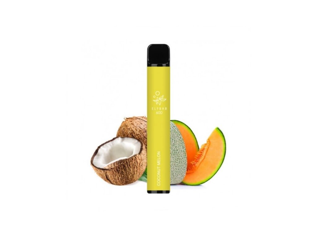 Jednorázová elektronická cigareta od značky ELF BAR s netradiční kombinací chutí sladkého kokosu a svěžího melounu! Kapacita baterie je 550 mAh, takže Vám vydrží alespoň na 600 potáhnutí. E-cigarety ELF BAR jsou skvělým parťákem na cesty a také Vám mohou pomoci při odvykání kouření klasických cigaret. Použití e-cigarety ELF BAR je velice jednoduché. Stačí ji vybalit z krabičky a začít vapovat. Uvnitř e-cigarety se skrývá náplň nebo-li liquid o objemu 2 ml. Obsah nikotinu je 20mg/ml (2%). Jednorázová e-cigareta nelze doplňovat ani dobíjet!