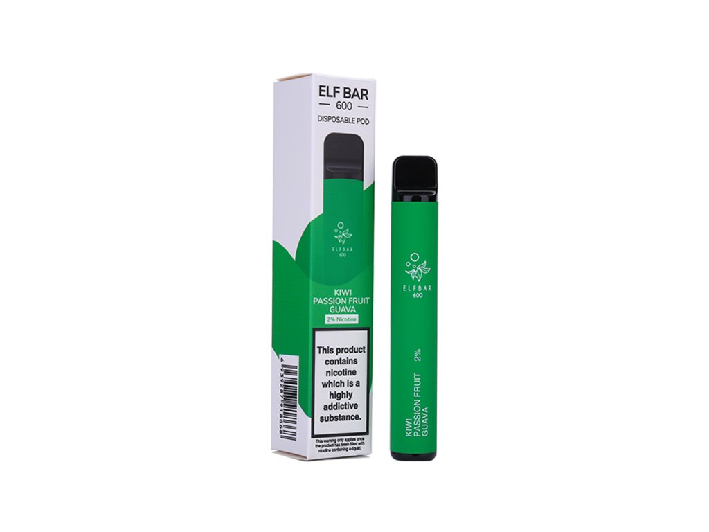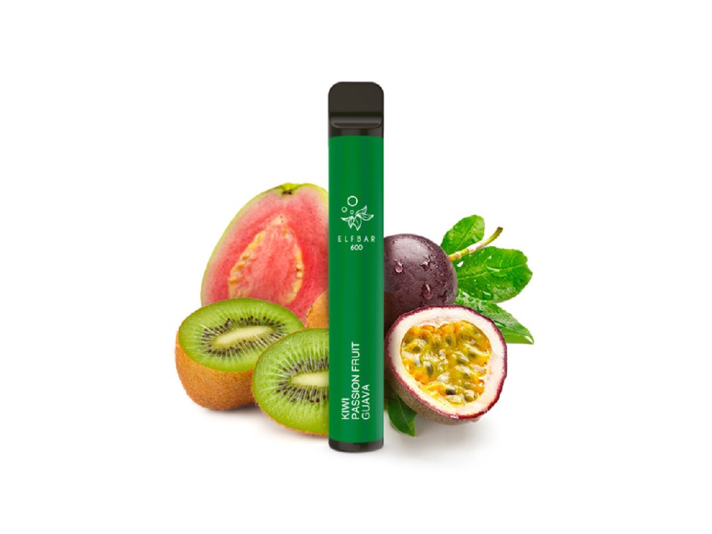 Jednorázová elektronická cigareta od značky ELF BAR s exotickou kombinací chutí kiwi, maracuji a sladké kvajávy! Kapacita baterie je 550 mAh, takže Vám vydrží alespoň na 600 potáhnutí. E-cigarety ELF BAR jsou skvělým parťákem na cesty a také Vám mohou pomoci při odvykání kouření klasických cigaret. Použití e-cigarety ELF BAR je velice jednoduché. Stačí ji vybalit z krabičky a začít vapovat. Uvnitř e-cigarety se skrývá náplň nebo-li liquid o objemu 2 ml. Obsah nikotinu je 20mg/ml (2%). Jednorázová e-cigareta nelze doplňovat ani dobíjet!