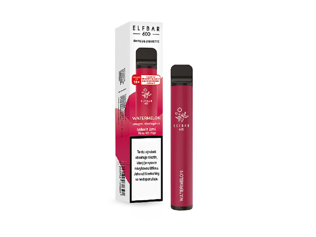 Jednorázová elektronická cigareta od značky ELF BAR s příchutí svěžího vodního melounu! Kapacita baterie je 550 mAh, takže Vám vydrží alespoň na 600 potáhnutí. E-cigarety ELF BAR jsou skvělým parťákem na cesty a také Vám mohou pomoci při odvykání kouření klasických cigaret. Použití e-cigarety ELF BAR je velice jednoduché. Stačí ji vybalit z krabičky a začít vapovat. Uvnitř e-cigarety se skrývá náplň nebo-li liquid o objemu 2 ml. Obsah nikotinu je 20mg/ml (2%). Jednorázová e-cigareta nelze doplňovat ani dobíjet!