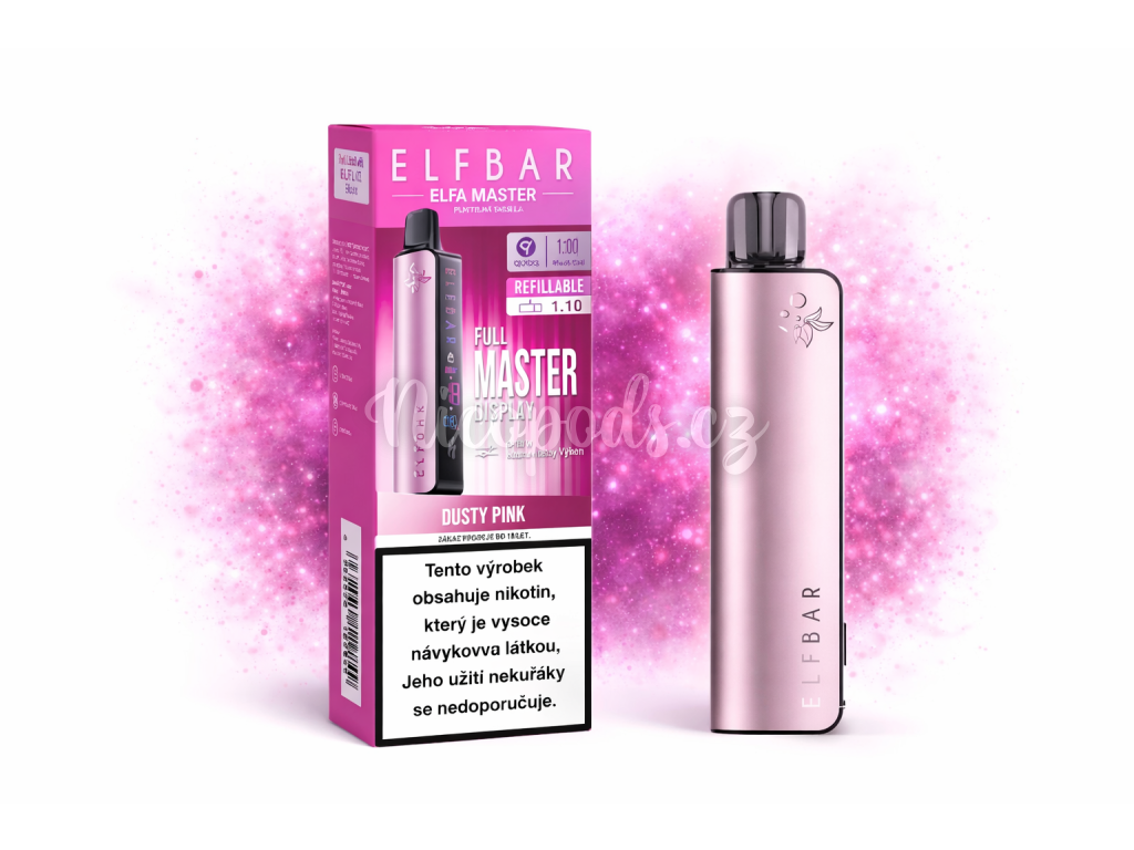 Plnitelná e-cigareta ELF BAR ELFA MASTER v krásné růžové barvě, kterou ocení zejména dámy.