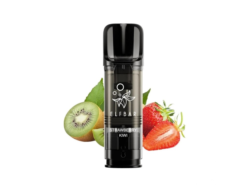 Předplněné Pody pro zařízení ELF BAR ELFA s ovocnou kombinací příchutí sladkých jahod a exotického kiwi. Balení obsahuje dva kusy předplněných Podů (cartridge) o objemu 2x 2 ml. Obsah nikotinové soli je 20 mg/ml. Příchutě jsou velmi autentické, stejně jako u jednorázových e-cigaret ELF BAR.