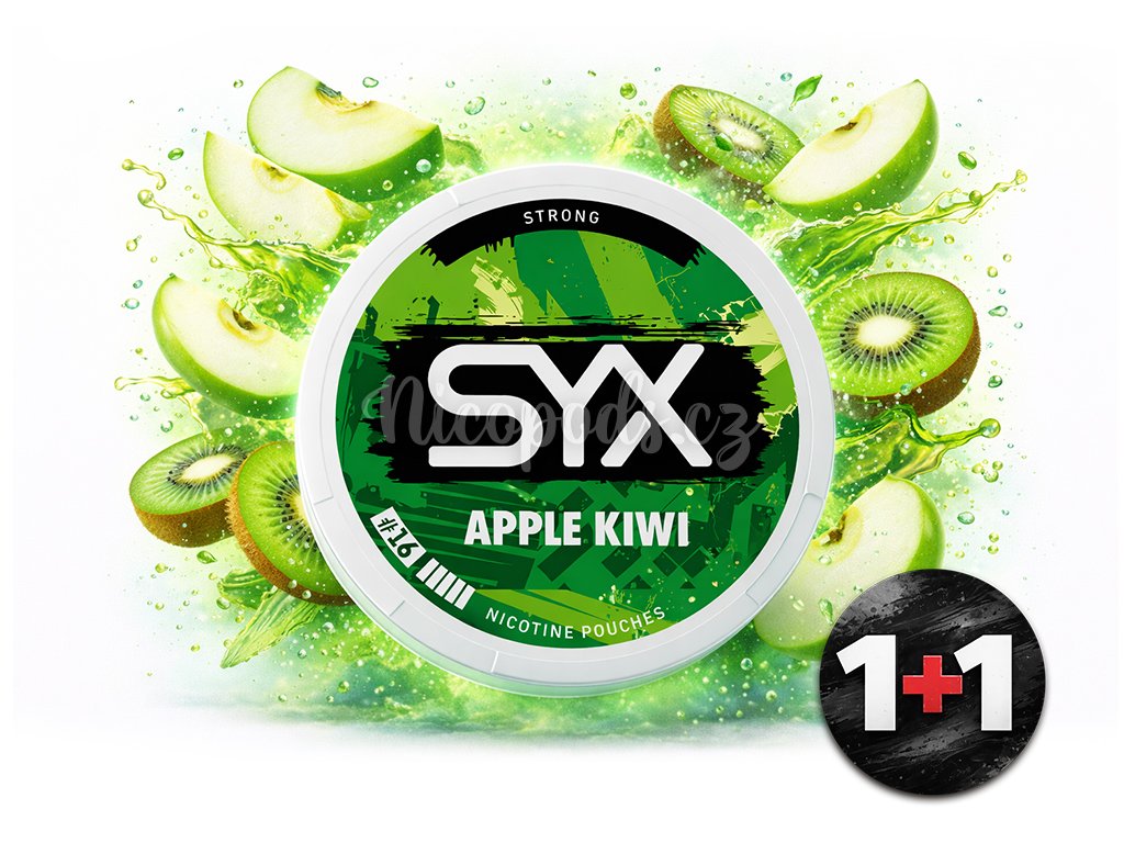 Nicotine pouches from the SYX brand with a fruity flavor mix of green apple and exotic kiwi. One package contains a total of 20 pcs in slim size. This format is very discreet and popular among users. The nicotine content is 16.4 mg/g (11.5 mg/pouch).