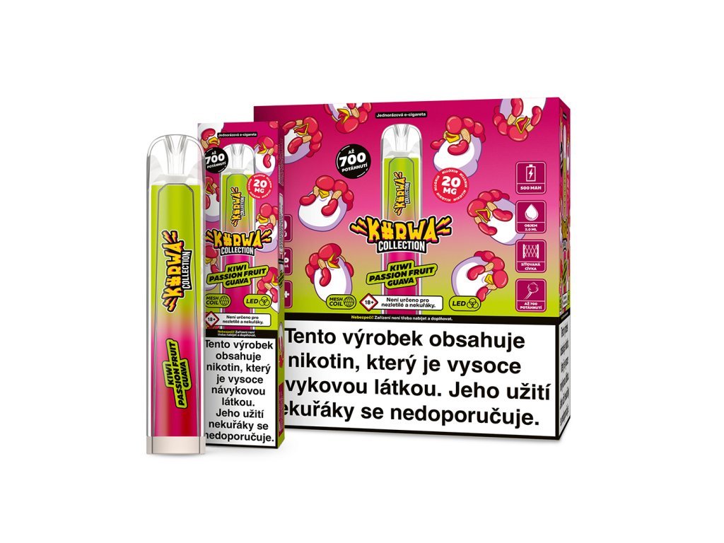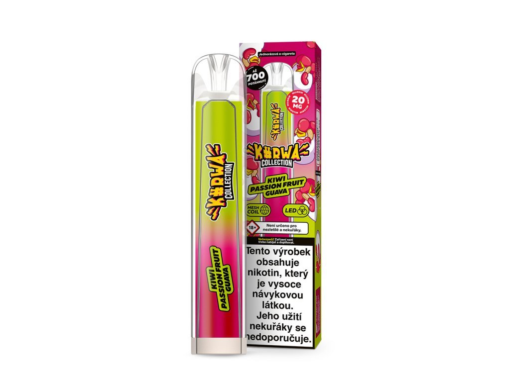 A disposable e-cigarette from a popular brand with an indecent name and a fruity flavor combination of sweet kiwi, maracuja and exotic guava! Kurwa Collection e-cigarettes come to the market in many great flavor mixes. The flavors are very good and authentic. They will gain popularity especially among users who prefer sweet fillings.