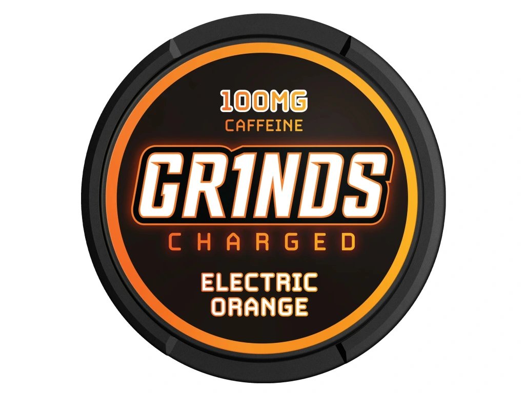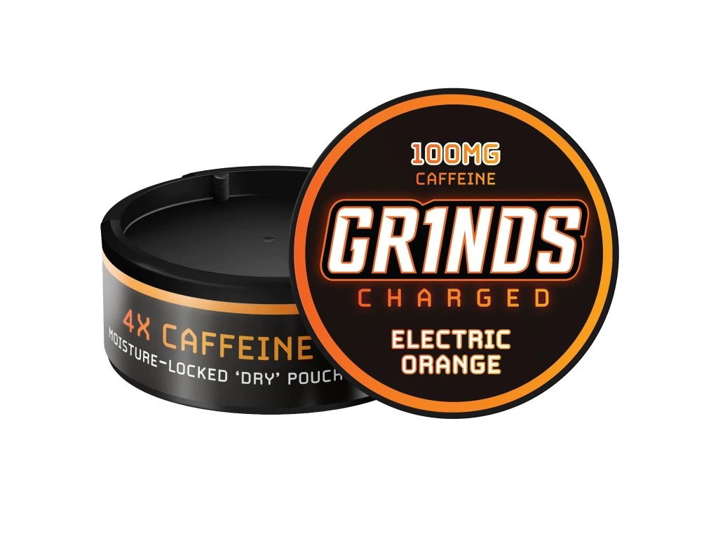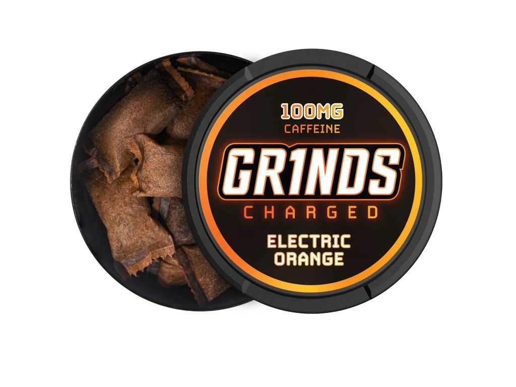 Coffee pouches from the American brand Grinds with a horse dose of caffeine and a refreshing orange flavor. The caffeine content is 100 mg/pouch.