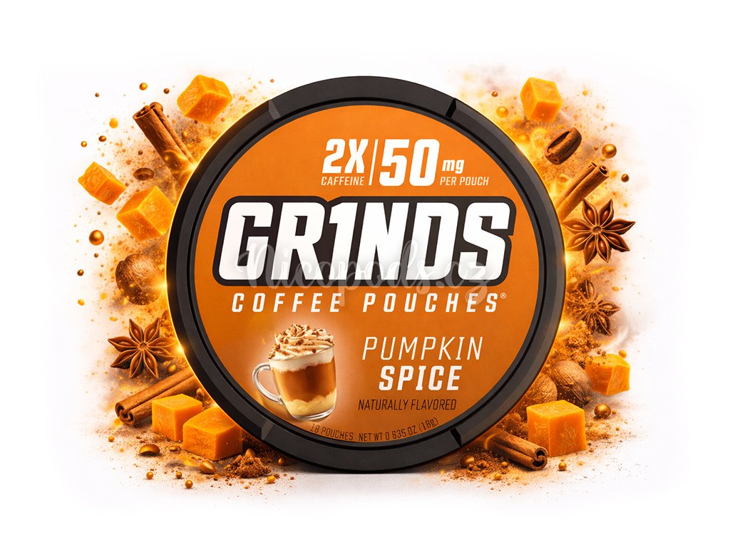 Coffee pouches from the American brand Grinds with a warm flavor combination of coffee, cinnamon and spices inspired by the popular Pumpkin Spice Latte.