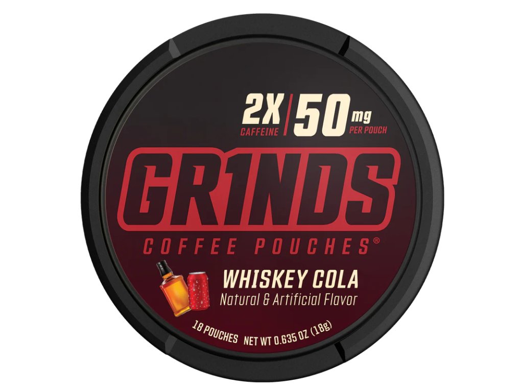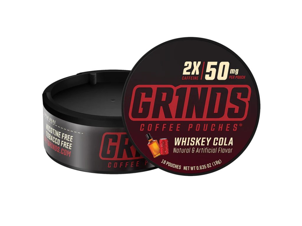 Coffee pouches from the American brand Grinds with an amazing flavor mix of iconic whiskey and sweet cola.
