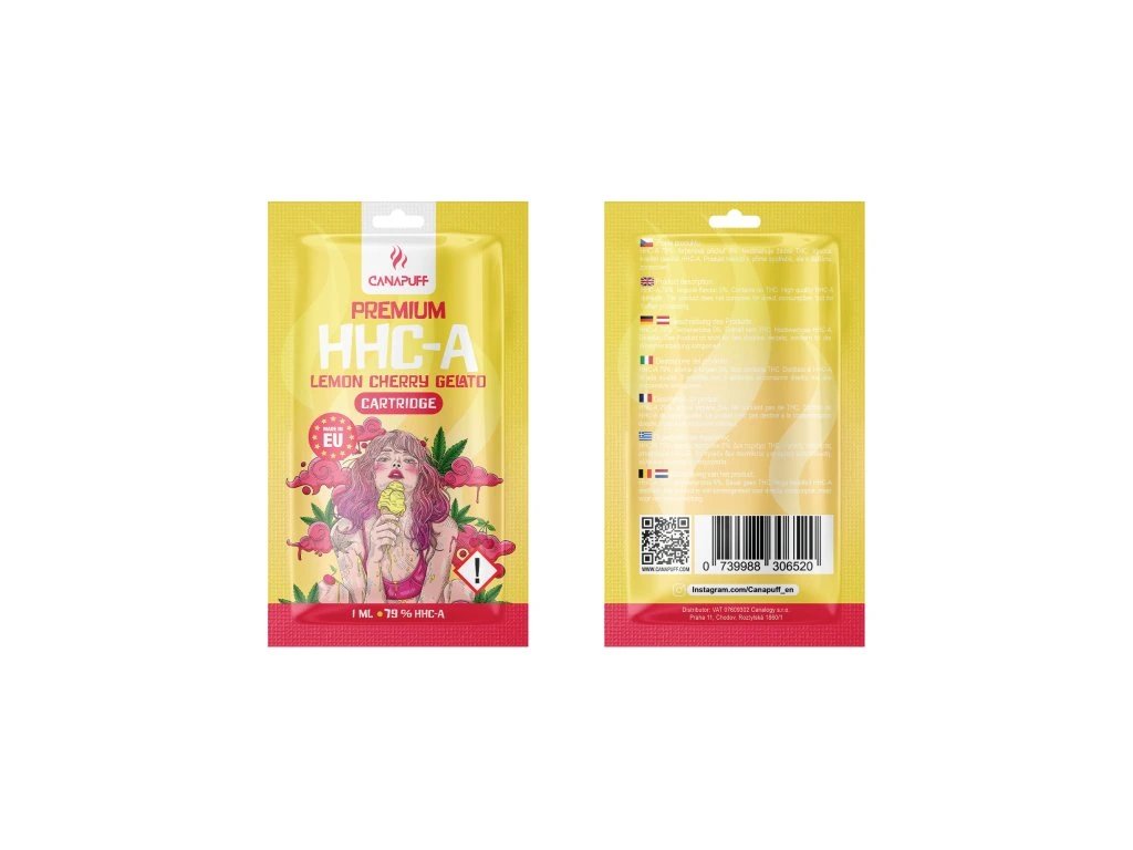 Cartridge with a 510 thread from the Canapuff brand with a high content of the active substance HHC-A. HHC-A content: 79%. The cartridge will last you about 450 puffs. The total volume of the filling is 1 ml.