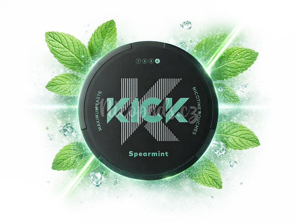 Kick nicotine pouches with a fresh spearmint flavor.