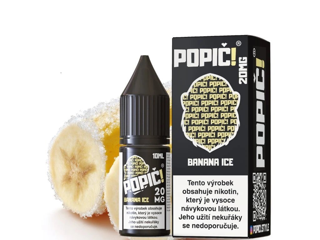 Filling for electronic cigarettes from the brand POPIČ! with a favourite banana flavor enhanced with icy tones.