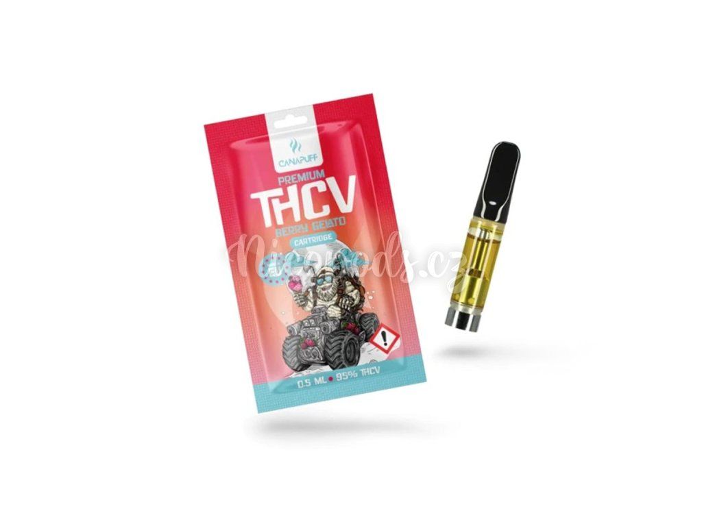 Premium THCV cartridge with 79% THCV distillate from the CanaPuff brand. Fruity flavor mix of sweet banana and tangerine combined with a whole range of terpene varieties will provide a very strong experience. The effects of THCV are very similar to THC, such as feelings of euphoria, increased heart rate, and improved mood. The advantages of using THCV in the form of cartridges are especially cleanness and no odor, just a pleasant smell. The volume of the cartridge is 0,5 ml and is enough for 250 puffs.