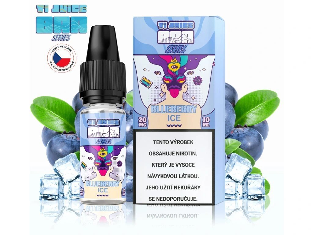 E-cigarette refill from the TI JUICE brand with a juicy blueberry flavor and cooling tones.