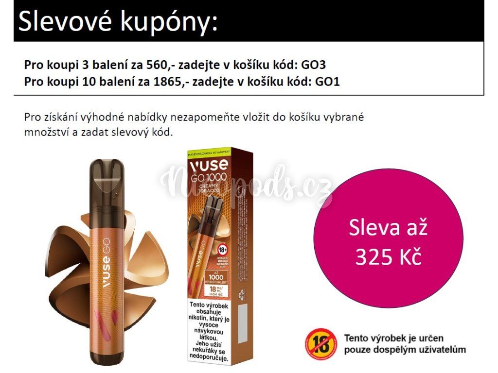 VUSE GO 1000 disposable e-cigarette, which impresses with its round curves and excellent durability for up to 1000 puffs. Try all the flavors and choose yours!