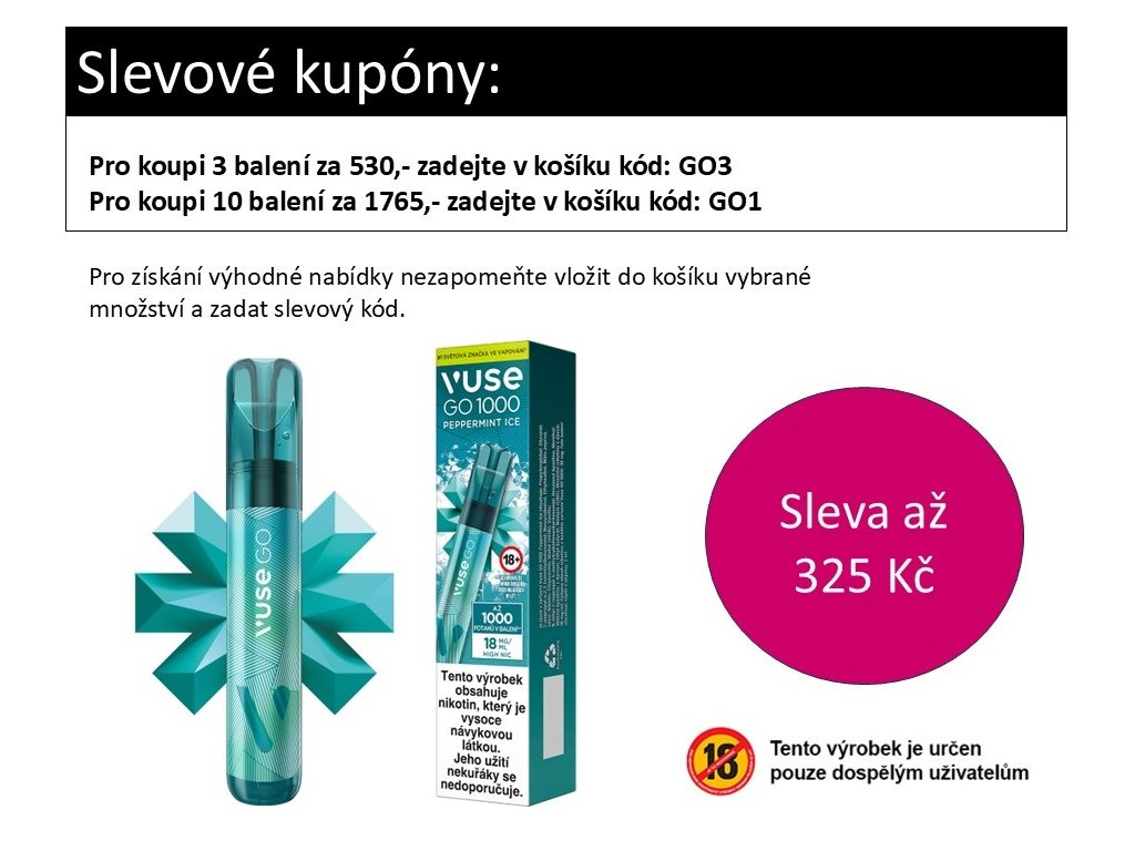 VUSE GO 1000 disposable e-cigarette, which impresses with its round curves and excellent durability for up to 1000 puffs. Try all the flavors and choose yours!