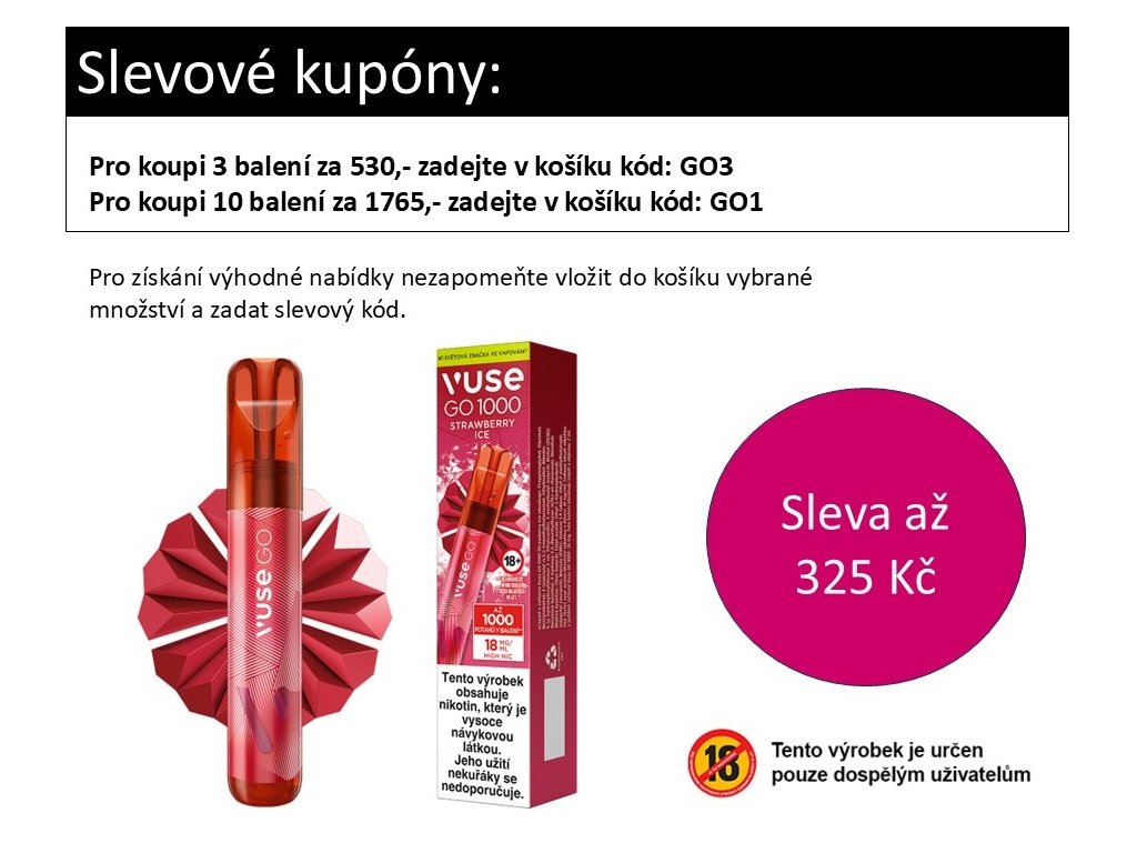 VUSE GO 1000 disposable e-cigarette, which impresses with its round curves and excellent durability for up to 1000 puffs. Try all the flavors and choose yours!