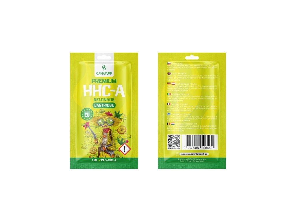 Šroubovací cartridge se závitem 510 od značky Canapuff s vysokým obsahem účinné látky HHC-A. Obsah HHC-A: 79%. Cartridge Vám vydrží cca na 450 potáhnutí. Celkový objem náplně je 1 ml.
