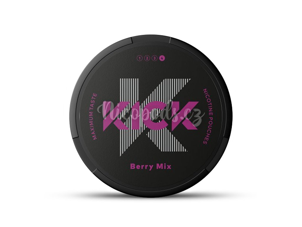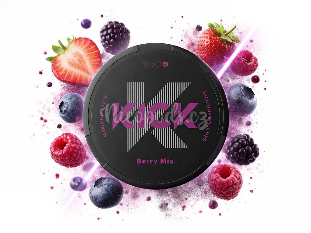 Nikotinové sáčky od značky Kick s příchutí lesního ovoce.