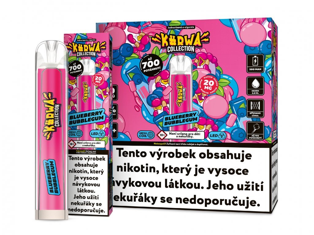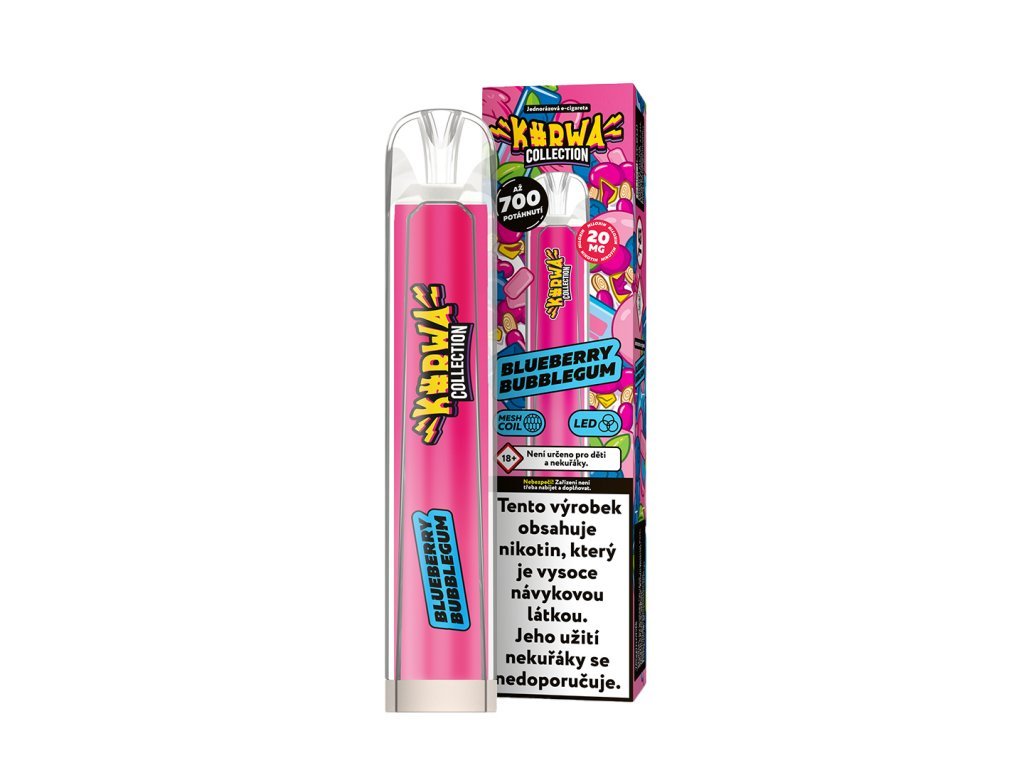 Jednorázová e-cigareta od oblíbené značky s neslušným jménem a senzačním chuťovým mixem borůvky a ovocné žvýkačky! E-cigarety Kurwa Collection přichází na trh hned v několika skvělých chuťových mixech. Příchutě jsou velmi povedené a autentické. Oblibu si získají zejména u uživatelů, kteří preferují sladší chutě náplní.