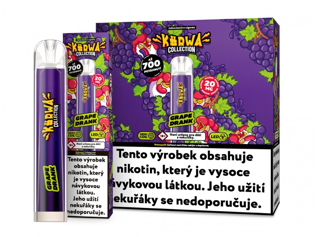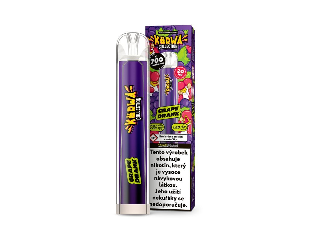 Jednorázová e-cigareta od oblíbené značky s neslušným jménem a velmi sladkou příchutí šťavnatého hroznového vína! E-cigarety Kurwa Collection přichází na trh hned v několika skvělých chuťových mixech. Příchutě jsou velmi povedené a autentické. Oblibu si získají zejména u uživatelů, kteří preferují sladší chutě náplní.