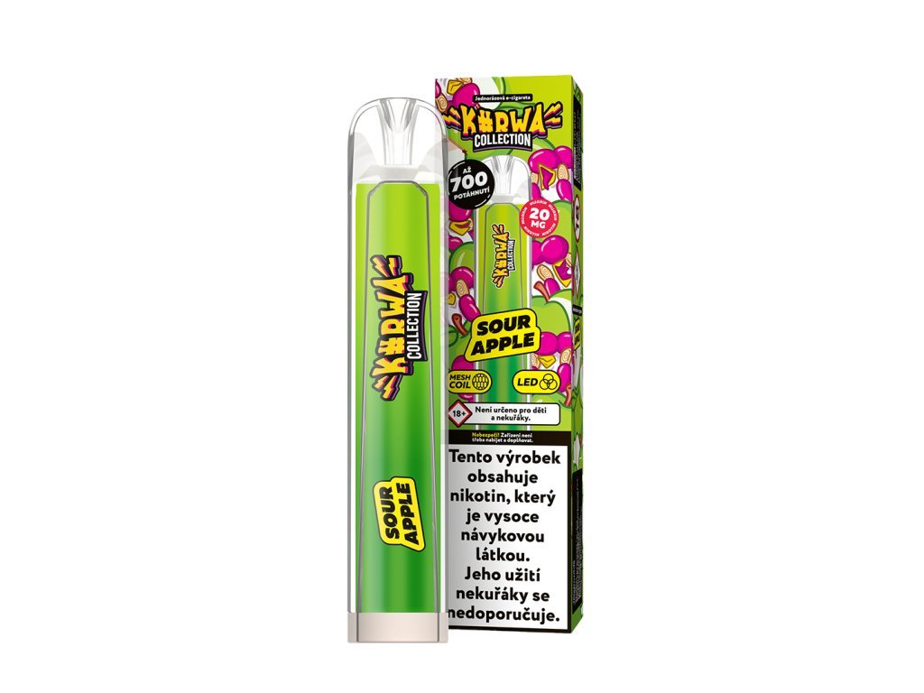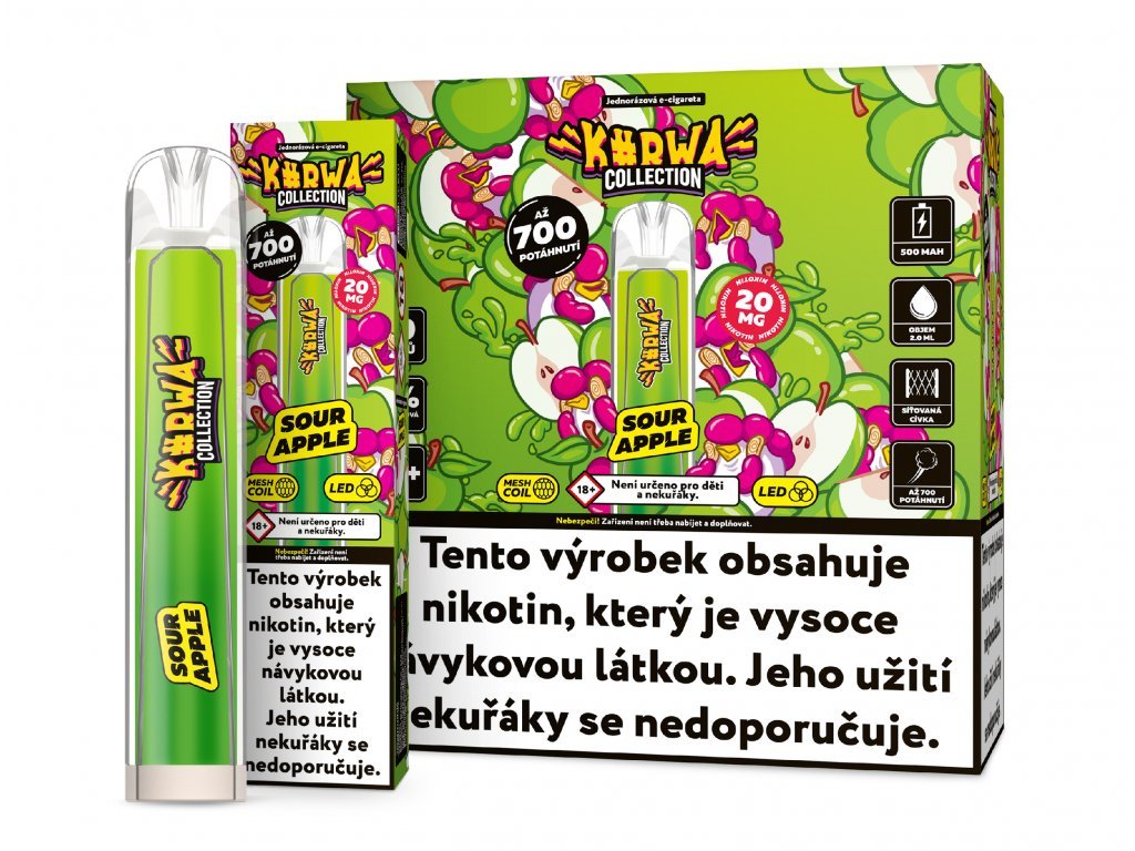 Jednorázová e-cigareta od oblíbené značky s neslušným jménem a kyselou příchutí zeleného jablka! E-cigarety Kurwa Collection přichází na trh hned v několika skvělých chuťových mixech. Příchutě jsou velmi povedené a autentické. Oblibu si získají zejména u uživatelů, kteří preferují sladší chutě náplní.