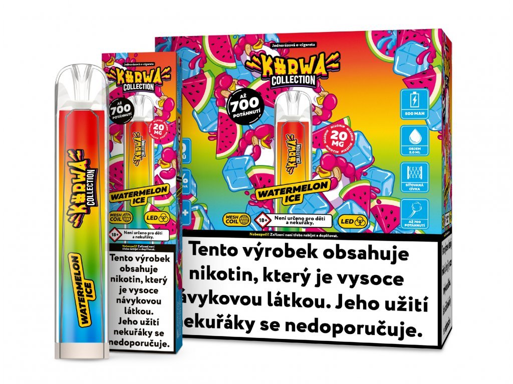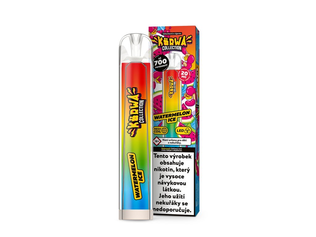 Jednorázová e-cigareta od oblíbené značky s neslušným jménem a osvěžující příchutí sladkého vodního melounu s ledovými tóny! E-cigarety Kurwa Collection přichází na trh hned v několika skvělých chuťových mixech. Příchutě jsou velmi povedené a autentické. Oblibu si získají zejména u uživatelů, kteří preferují sladší chutě náplní.