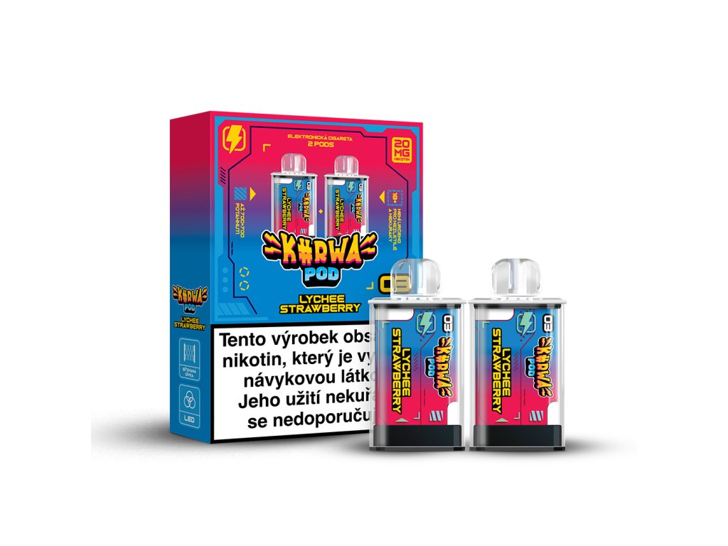 Náhradní náplně pro zařízení KURWA POD s chuťovým mixem exotického liči a sladké jahody.