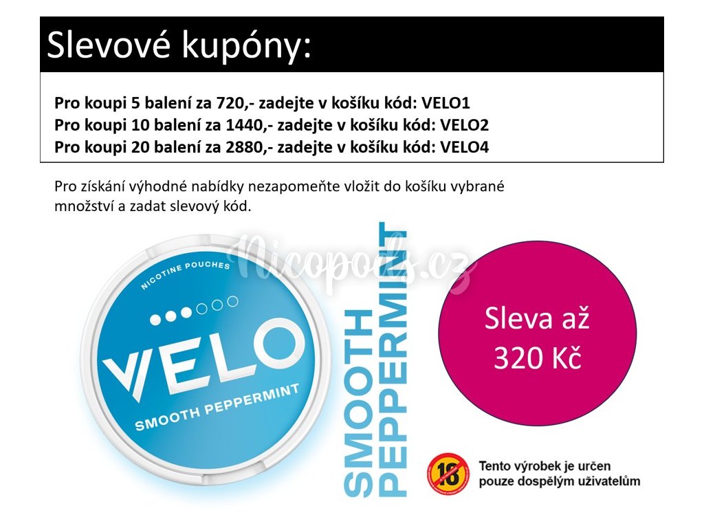 Výrobek VELO obsahuje nikotin, který je vysoce návykovou látkou. Tento výrobek není určen pro nezletilé a nedoporučuje se pro nekuřáky. Tento produkt může být nebezpečný pro zdraví.