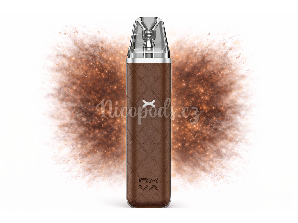 Xlim GO je úžasně vypadající POD, který nabídne příjemně veliké rozměry s elegantním povrchem, který je kombinací koženého potahu a lesklých kovových kontur. Po bocích naleznete plynulé nastavení airflow a Zepředu zařízení je elegantně řešená LED dioda ve tvaru loga OXVA. Řídí se klasickým schématem RGB (Zelená - 100-60%, Modrá - 60-20%, Červená - 20-0%).