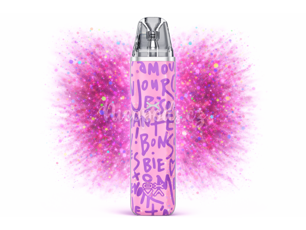 Stylové a zároveň moderní zařízení s výkonnou baterií o kapacitě 1000 mAh. Maximální výkon zařízení je 30 W. Tělo zařízení je vyrobené z kovu a na povrchu naleznete kožené prošívání v nádherné růžové barvě se zajímavým graffiti vzorem, které je příjemné na dotek. Na boku zařízení se dále nachází tlačítko pro nastavení air flow.