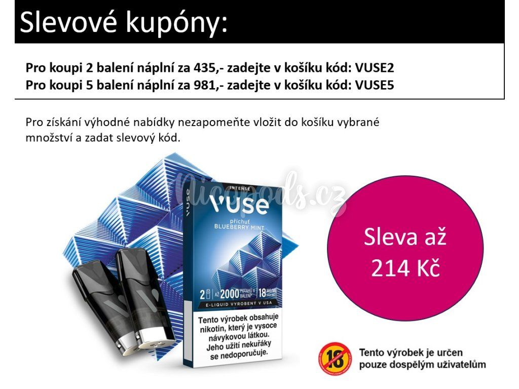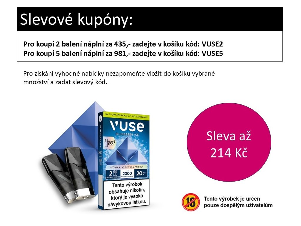 • Náplně Vuse jsou plně kompatibilní se zařízením Vuse GO Reload 1000, Vuse ePOD a Vuse PRO