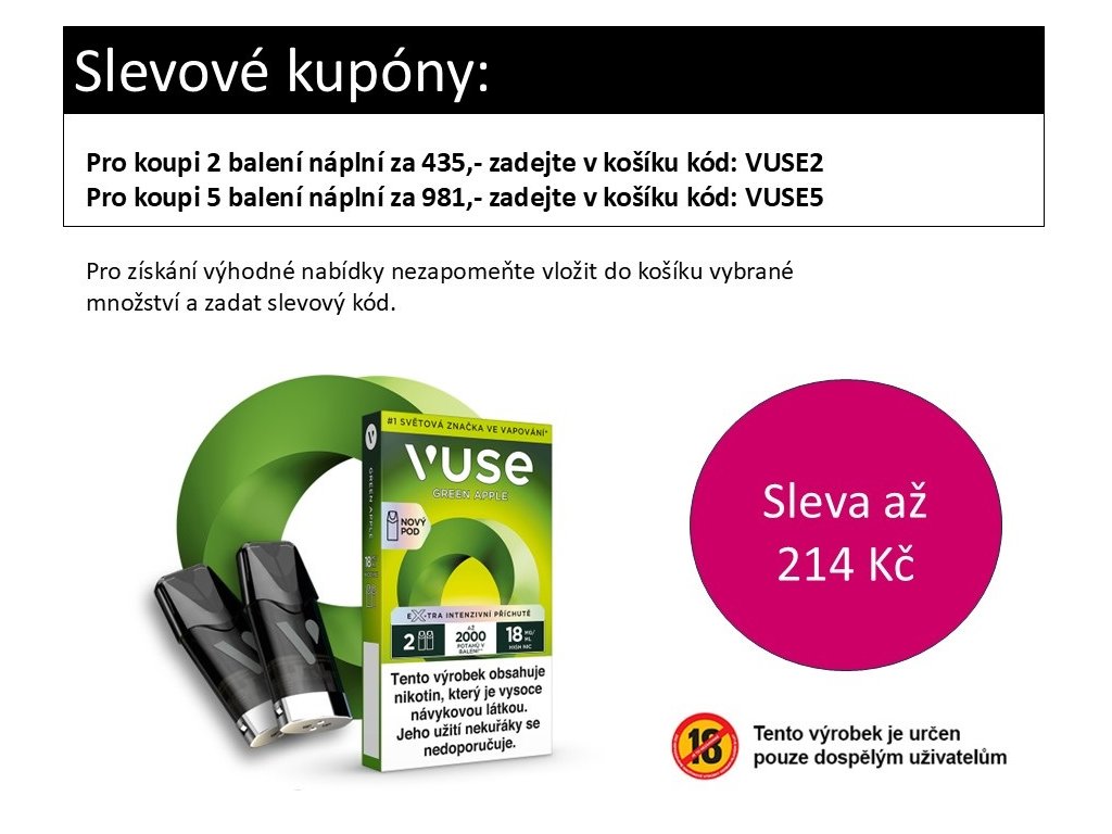 • Náplně Vuse jsou plně kompatibilní se zařízením Vuse GO Reload 1000, Vuse ePOD a Vuse PRO