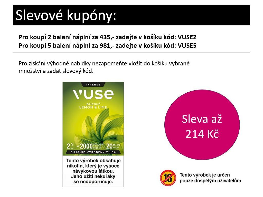 Užívejte náplně pouze se zařízením Vuse GO Reload 1000, Vuse PRO nebo Vuse ePOD.