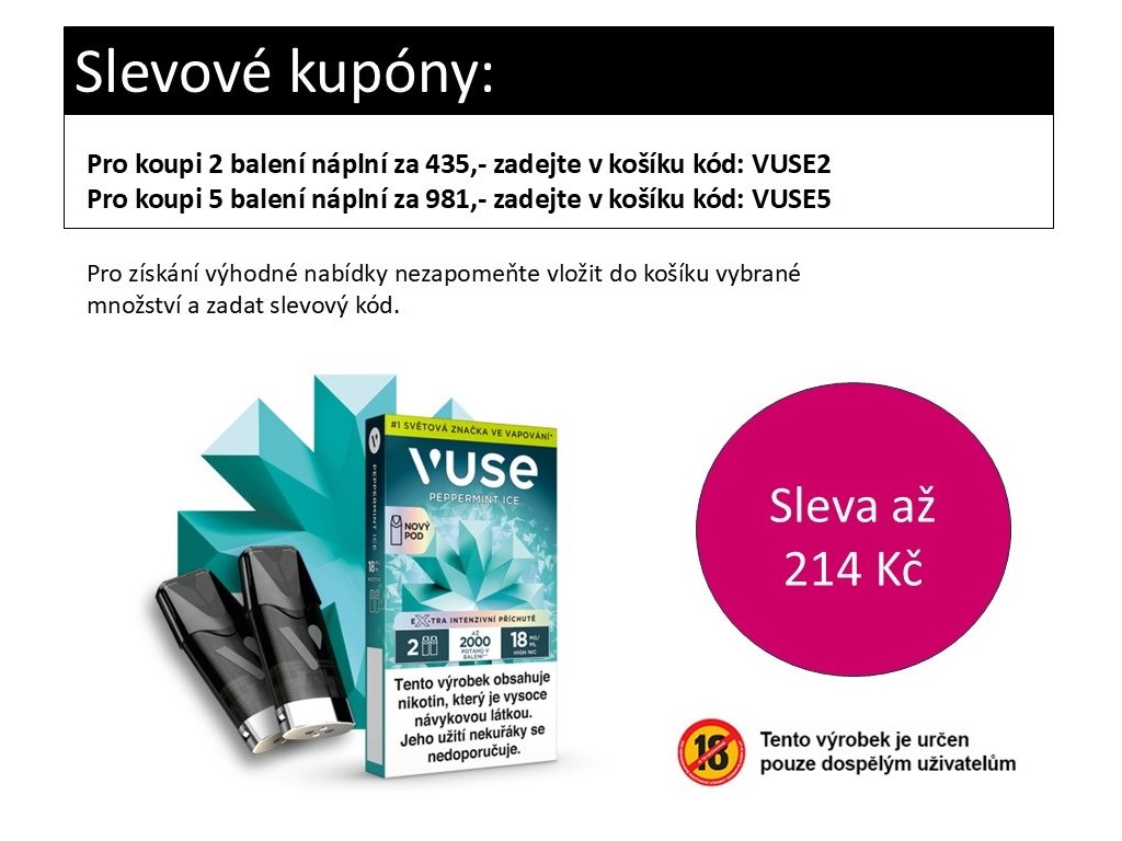 • Náplně Vuse jsou plně kompatibilní se zařízením Vuse GO Reload 1000, Vuse ePOD a Vuse PRO
