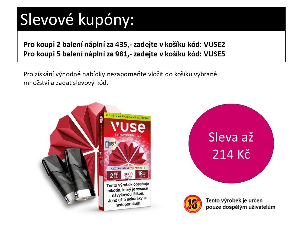 • Náplně Vuse jsou plně kompatibilní se zařízením Vuse GO Reload 1000, Vuse ePOD a Vuse PRO