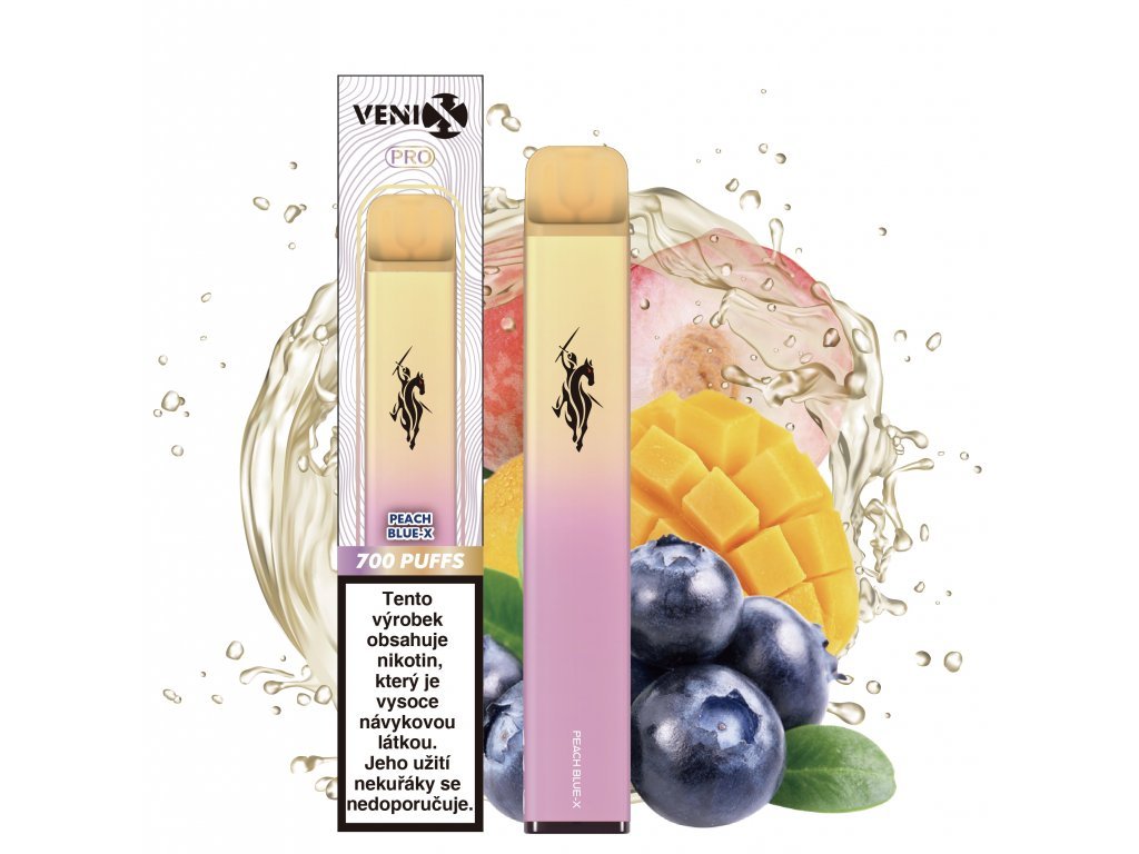 Disposable e-cigarette with the fruity flavor mix juicy peach and sweet blueberries from the VENIX brand. VENIX's PRO edition features an improved heat technology called MESH-COIL , which is very popular among vape users. This technology ensures optimal heat distribution and optimal heating of the e-liquid. This allow the e-cigarette to achieve a higher quality of the flavor and a longer battery life.