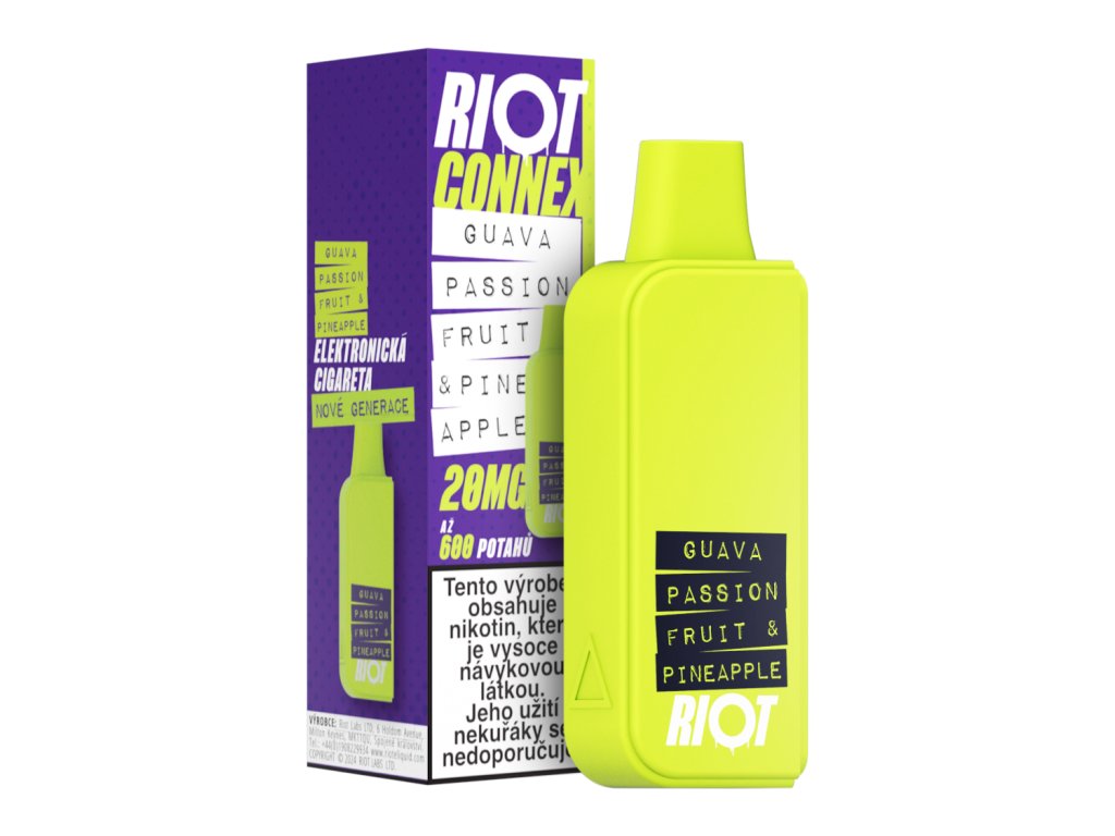 Nadupaný mix chutí exotické kvajávy, sladké maracuji a šťavnatého ananasu. Náplň jednoduše spojíš ze strany s RIOT CONNEX baterií pomocí silných magnetů.
