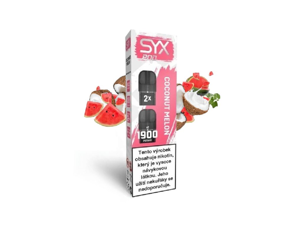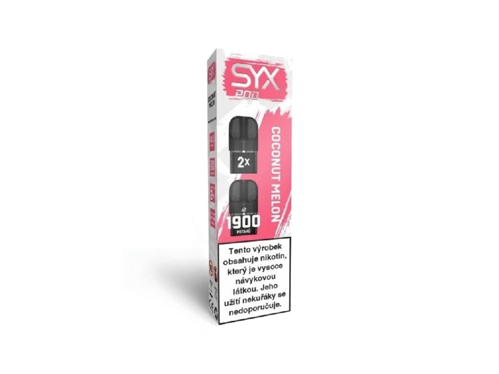 Replacable cartridge for POD system e-cigarette SYX with flavor combination of sweet coconut and juicy melon.