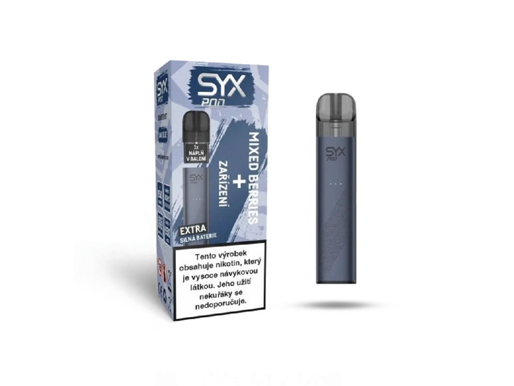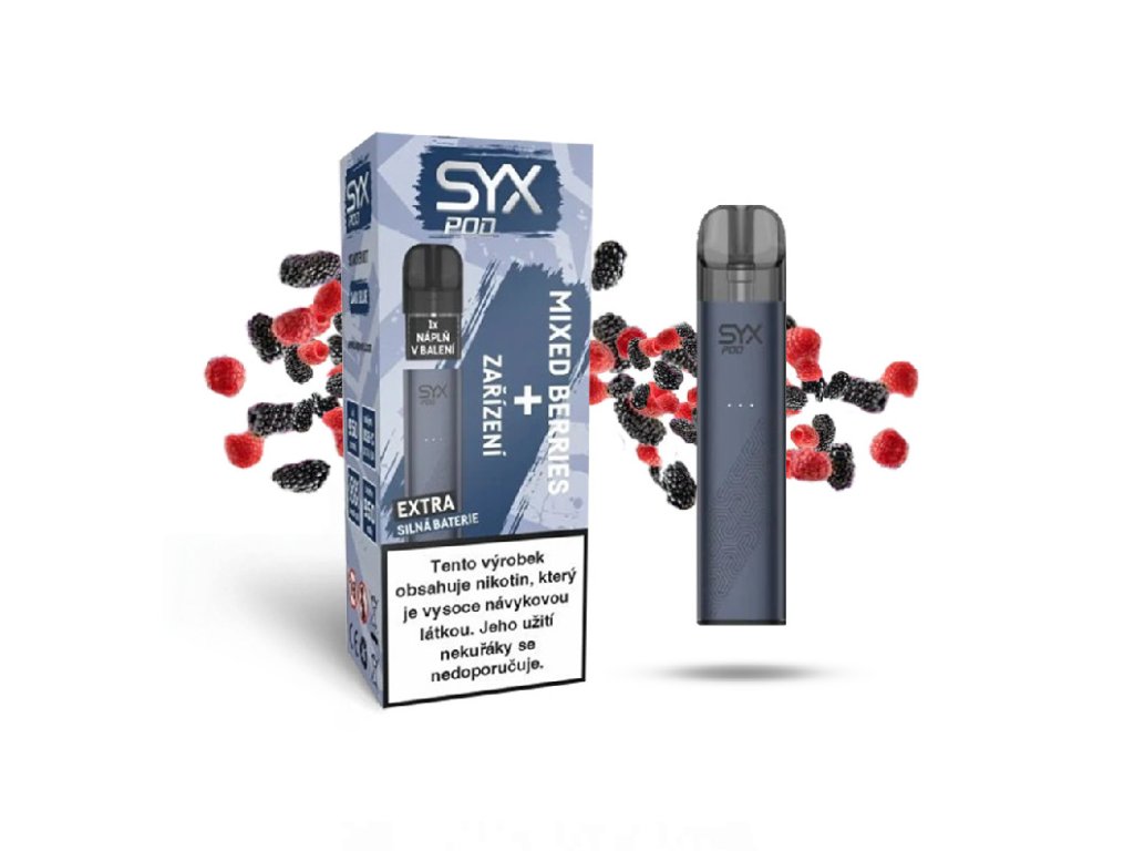 Obsah Balení: 1x Baterie e-cigarety SYX POD, 1x vyměnitelná cartridge s příchutí mixed berries