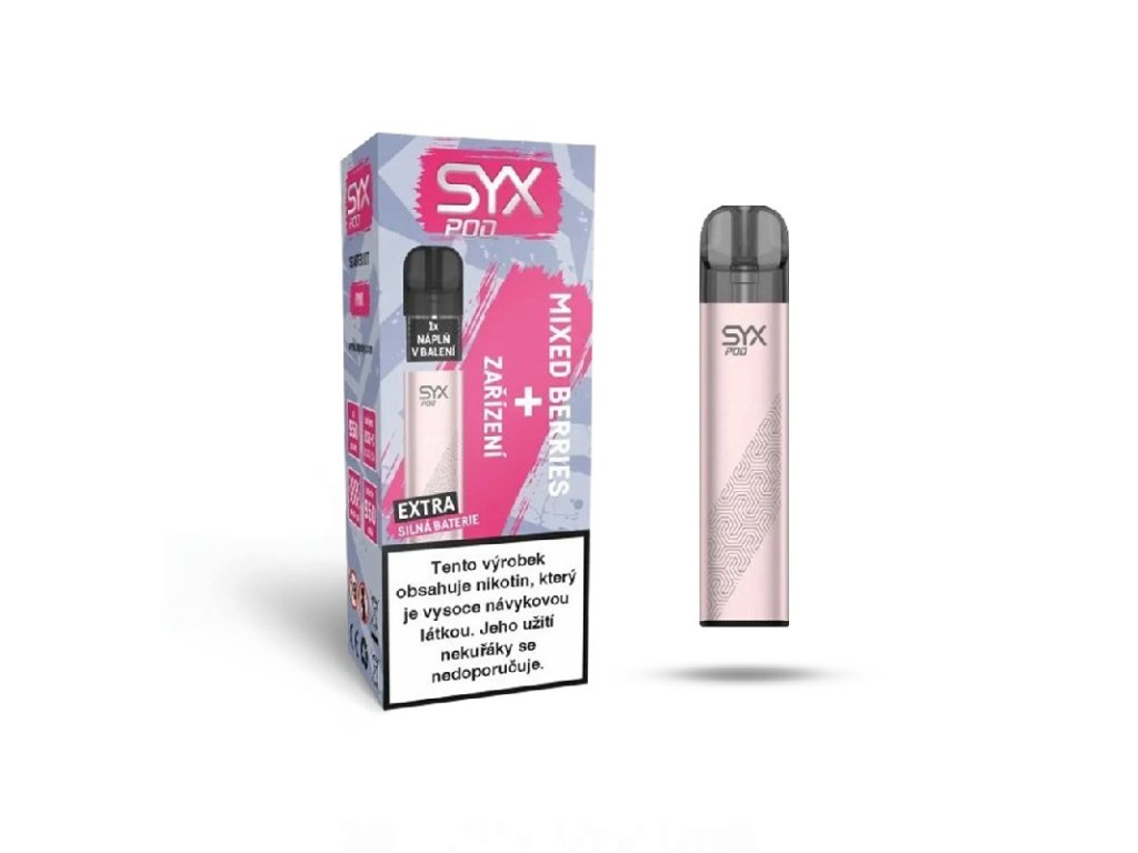 Obsah Balení: 1x Baterie e-cigarety SYX POD, 1x vyměnitelná cartridge s příchutí mixed berries