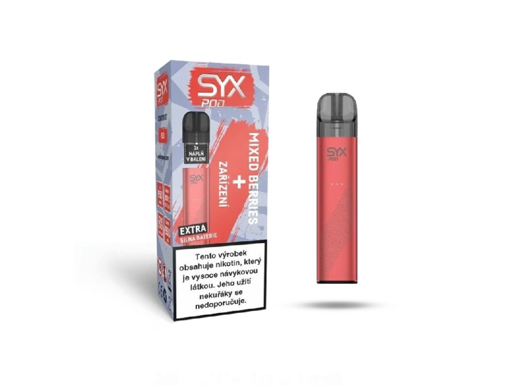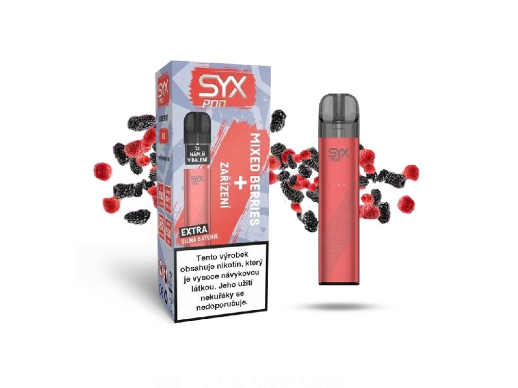 Obsah Balení: 1x Baterie e-cigarety SYX POD, 1x vyměnitelná cartridge s příchutí mixed berries