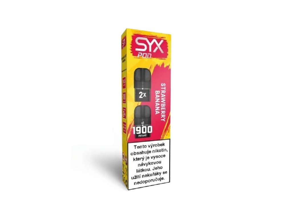 Replacable cartridge for POD system e-cigarette SYX with fruity flavor combination of sweet strawberries and banana.