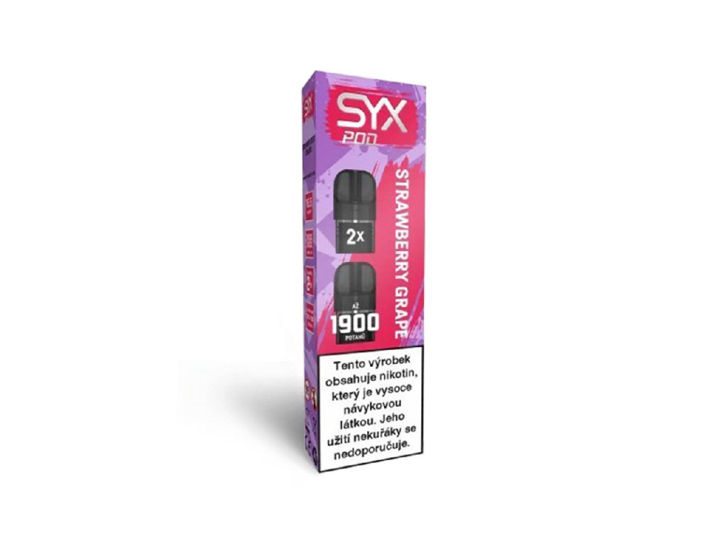 Náhradní náplně pro POD systém e-cigaretu SYX s ovocnou kombinací chutí sladkých jahod a šťavnatého hroznového vína.