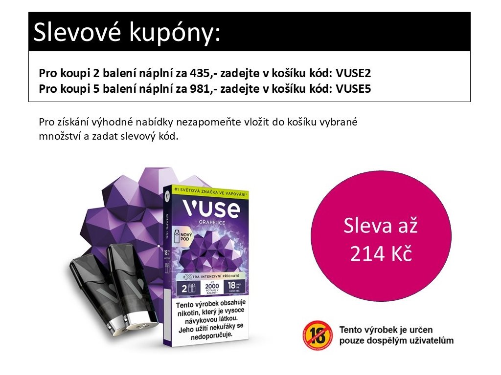 • Náplně Vuse jsou plně kompatibilní se zařízením Vuse GO Reload 1000, Vuse ePOD a Vuse PRO